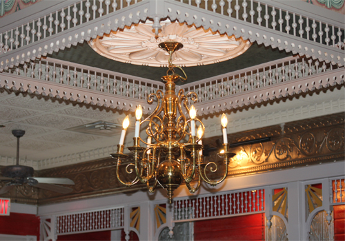 Black gargoyles and elegant scroll designs adorn green light posts outside the grounds. Chandeliers grace the ceiling, and a guest books sits on a bombe chest where visitors from all around the country have left their mark in Northwest Arkansas.