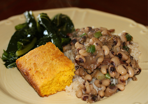 Eat poor that day, eat rich the rest of the year. Rice for riches and peas for peace. — Traditional Southern saying
